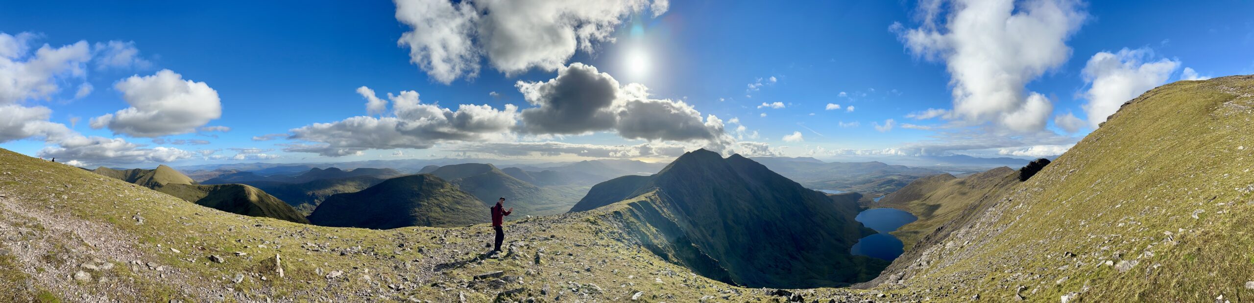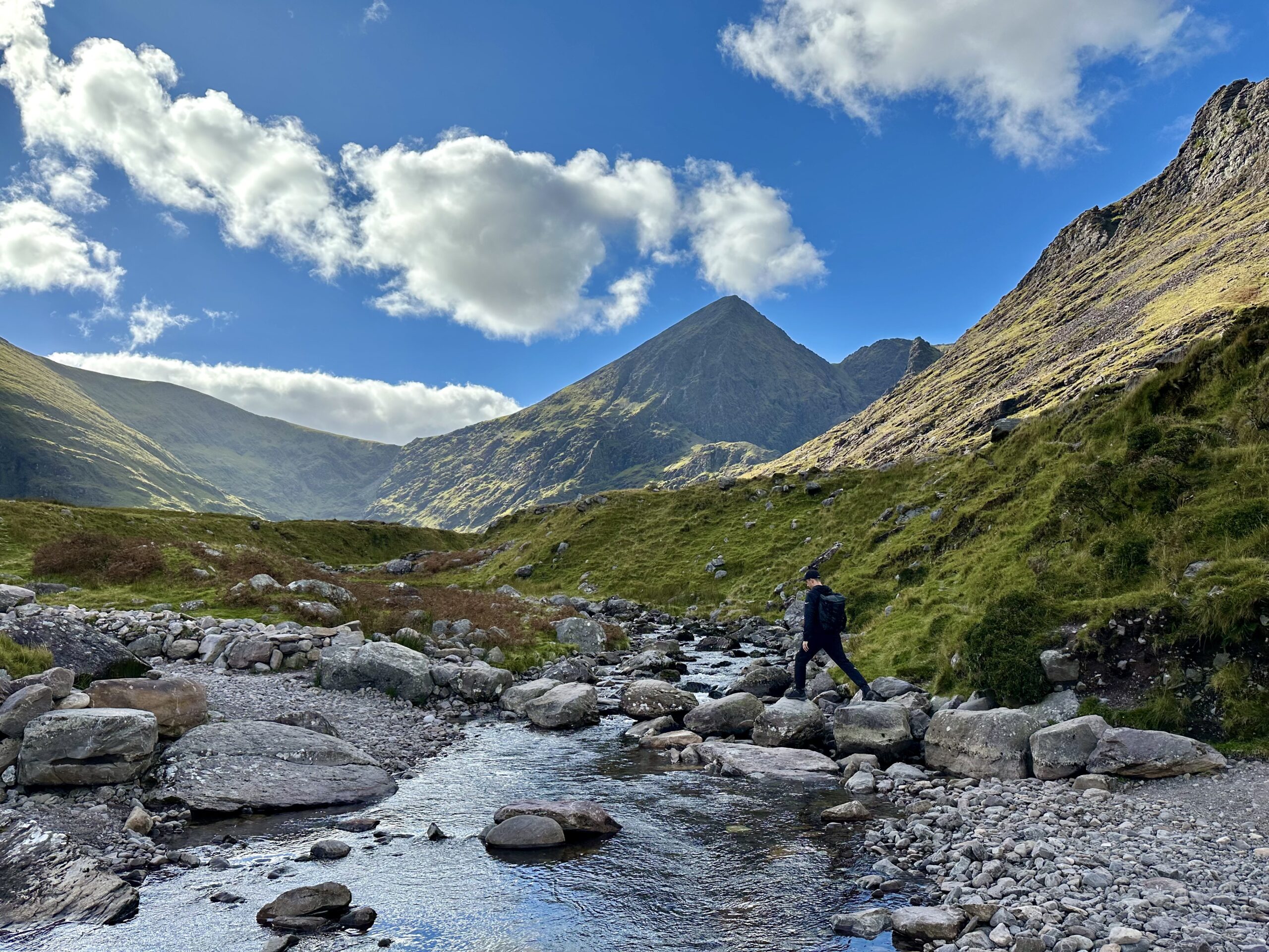 Climbing Carrauntoohil feels like walking into the heart of Ireland — mist curling over ridges, valleys opening below, and the summit touching the edge of the sky.