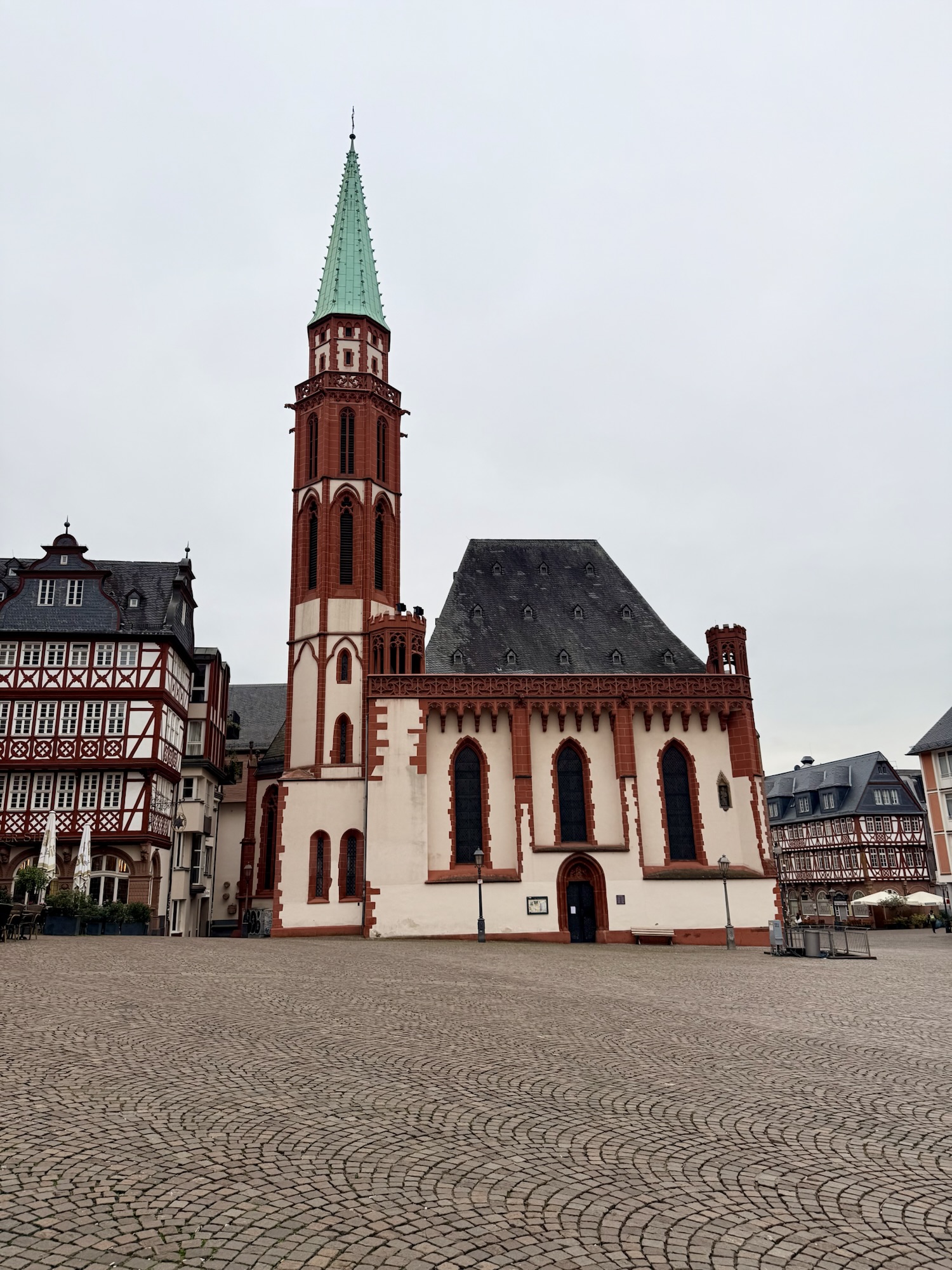 - Frankfurt’s city centre blends modern skyscrapers with historic charm, centered around the picturesque Römerberg square. One of its highlights is St. Nicholas Church, a beautiful Gothic-style church dating back to the 13th century. Once the chapel of Frankfurt’s city council, it now stands as a peaceful landmark overlooking the bustling square.